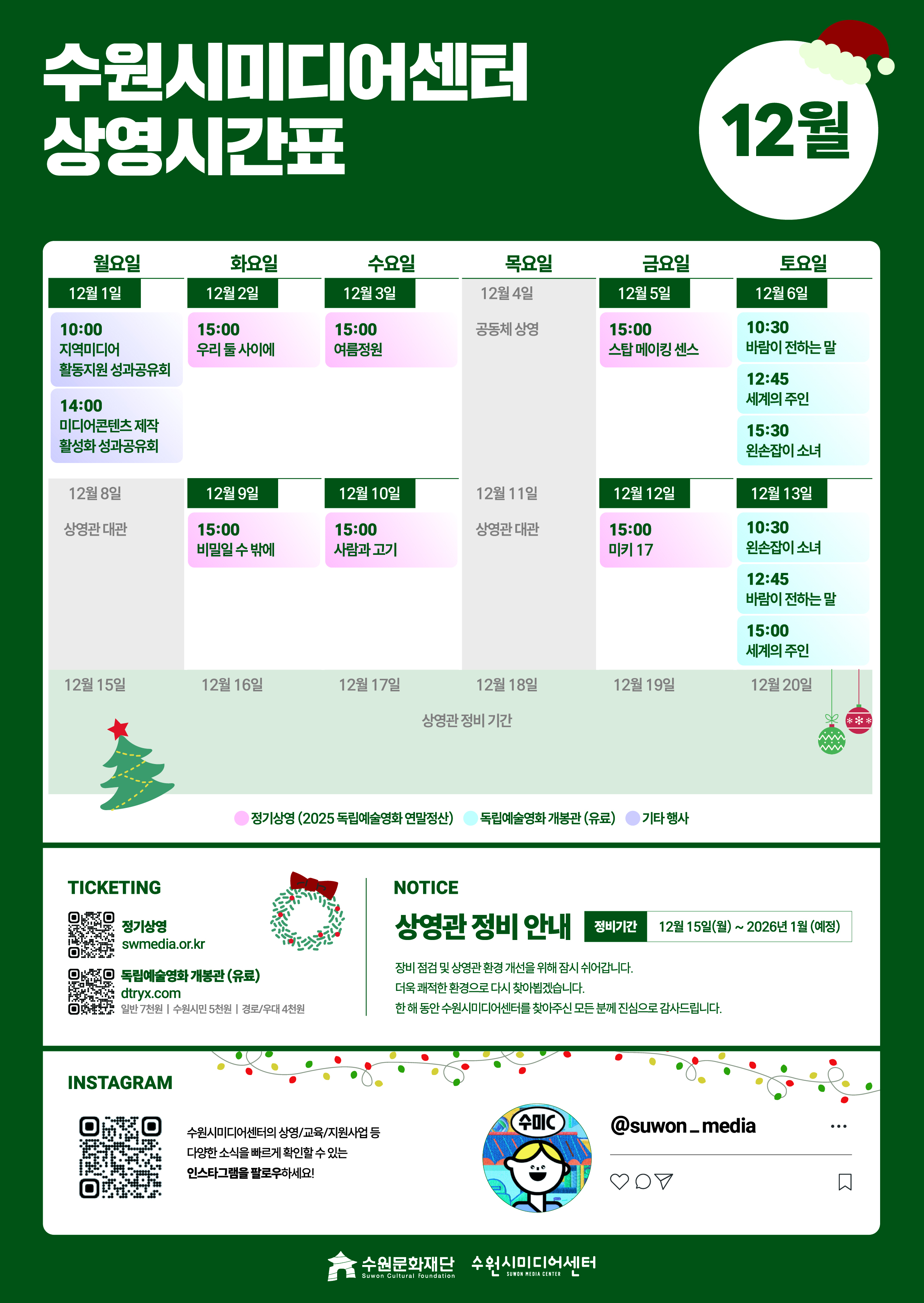 - 정기상영(평일) : https://www.swmedia.or.kr/movie/list.do